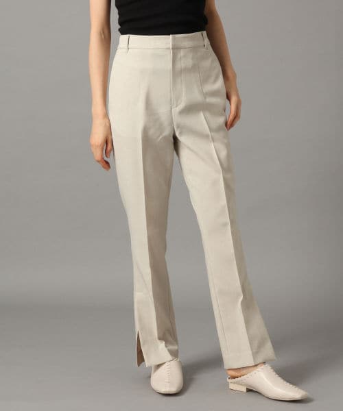 ドライな表面感でしわになりにくく、速乾性があり軽量なのが特徴の機能素材”リランチェ”を使用したパンツ。センタープレスでキレイめにも穿くことができ、裾に入ったスリットで微フレアシルエットが今年らしい♪ウエストバッグはゴム仕様なので、前から見るとスッキリ見えるのに楽に穿けるのが魅力です。