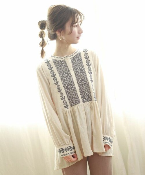 存在感のある刺繍チュニック。 ヴィンテージライクな雰囲気で胸元と袖口の刺繍が魅力的。 前のボタンを外せば羽織としても着られるため、様々なコーディネートが楽しめます。 少し長めの丈感でふんわりとしたシルエットなので ボトムスはパンツスタイルですっきりと着こなすのがおすすめ◎ ワンピ―スとのシリーズ展開で、この春Crisp一押しのアイテムです。 フロントとバックの切り替えがスタイル良く見せてくれます。 単色使いの刺繍で大人っぽく、バイカラーなので存在感もあります。 コットン素材で製品洗いにもかけているので、柔らかく着心地の良い商品です。 - - - - - - - - - - - - - - - - - - - - - - - - - - - - - - - - - 透け感:なし 裏地:なし 伸縮性:あり 光沢感:なし - - - - - - - - - - - - - - - - - - - - - - - - - - - - - - - - -