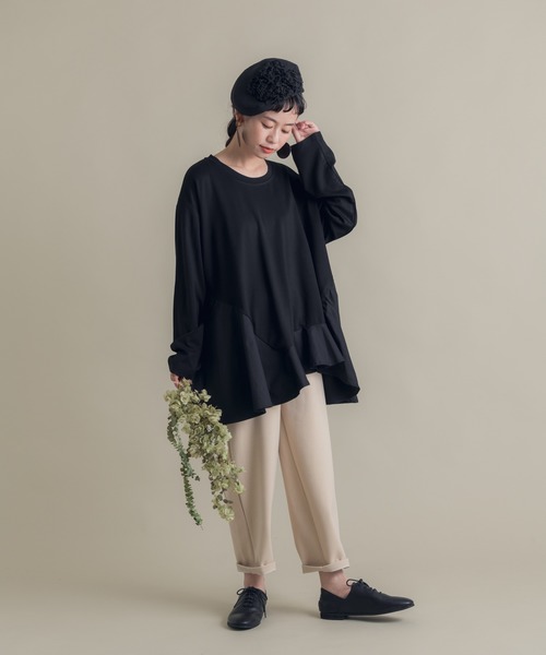【Libra 切り替えフレアカットソー】シンプルなカットソーに大人カジュアルな工夫をプラスさせたフレアシルエットがキレイな一枚。《styling》アシンメトリーにあしらわれた裾デザインが特徴的な一枚。ゆるっとしたルーズなシルエットでテーパードパンツなどに合わせてスッキリとしたリラクジングな着こなしがオススメ。スキニーパンツで足元をスッキリさせるのも◎《detail》同色の切り替え生地はスッキリとしたシルエットを作り出し、シンプルなのに印象に残る一枚に。袖は膨らませずスッキリとさせて野暮ったくならないデザイン。《fabric》ハリ感のある綿100%。なめらかな肌触りで軽やかな着心地が魅力的。裾の切り替え部分は程よいハリ感でキレイなフレアシルエットを作り出します。※詳しいお手入れ方法は商品タグをご参照ください。【Libra】包み込むような着心地の良さと程よいモード感。エイジレスにファッションを楽しむ大人の女性に向けたRelax mode wear を提案します。【商品のお気に入り登録】完売カラーの再入荷通知やラスト1点の通知プライスダウンの通知も受け取ることができます。ぜひご登録ください◎【ブランドのお気に入り登録】新商品や再入荷など、ブランドの情報をいち早くお知らせします!ぜひご登録ください◎※ご注文いただいた予約商品のお届け時期確認は、注文履歴ページより行えます。