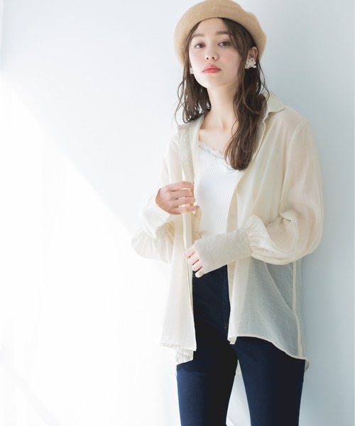 今季、大注目のシアーシャツが登場★ 首元のリボンとふんわりとした袖がフェミニンな雰囲気! リボンは取り外しのできる2WAY仕様なので外してシンプルなシャツとしても使えます。 長めのカフスや丸襟などディティールにこだわっているので1枚でさらっと着こなしても◎ WEB限定カラーのブルーを加えた6色展開なのでカラバリで揃えてもいいかも♪ ホワイトやベージュのベーシックカラーはトレンドのカラーボトムを合わせたり シャツと同色でワントーンコーデにするなど色で遊ぶのがおすすめ。 ブルーやパープルなど鮮やかなカラーはホワイト系のボトムスやデニムと合わせて 春らしく着こなすのがおすすめです! ※屋外の光や照明の当たり具合で、実際の商品と画像の色味に違いが発生する場合がございます。