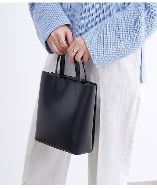 今までありそうでなかった縦のトート型と、絶妙なサイズ感がポイントの2ポケットバッグ。ポケットをアシンメトリーになっているのがアクセントに。薄いポケットには、小型のタブレットや文庫本などを入れるのもオススメです。