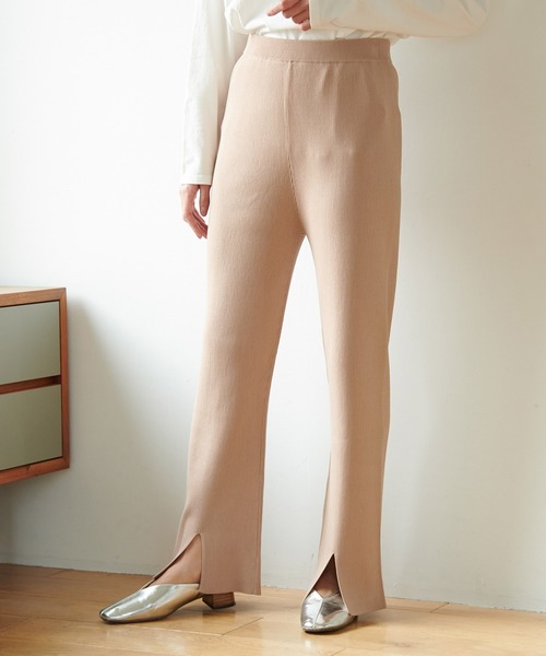 これさえあればトレンド顔に!1枚はキープしたいニットパンツ。トレンド感をアシストする、リブニットパンツが登場です。 ストンと落ちるシルエットで、フロントスリットによる自然な広がりが脚のラインを絶妙にカバーしてくれます。 シューズとのバランスも取りやすく、ニットパンツ初心者でもチャレンジしやすいデザイン。 穿き心地もよく、リラックスしたいオフの日に最適のアイテムです。 UVケア&マシンウォッシャブルの高機能付きも嬉しいポイント。 ・裏地なし。 ※撮影時の光によって色の見え方が異なる場合がございます。