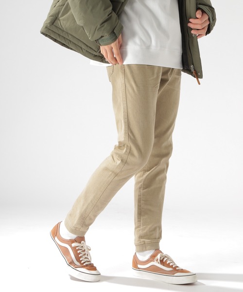 しっかりとしたカツラギ生地を使用したスキニーシルエットのジョガーパンツ。ハイパーストレッチ生地で伸縮性も良く、ウエストもリブ仕様なので穿き心地も快適。製品で硫化染めをすることで、BAYFLOWらしい褪せた加工感を出しています。裾絞りのジョガーデザインで、スポーティな印象な1本です。※屋外での撮影画像は光の加減で実際の商品より明るく見えたり、風合いが異なって見える場合がございます。商品の色味はスタジオ撮影の画像を参考にして下さい。
