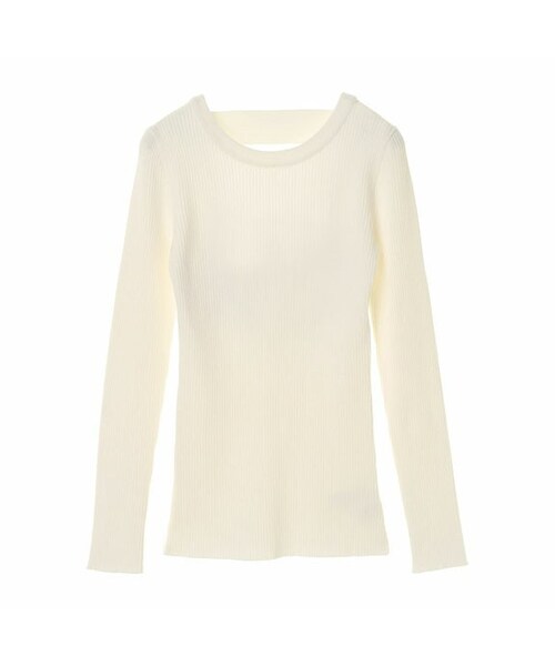 太めのバンドがポイントになったバックスタイルが印象的なシンプルニット