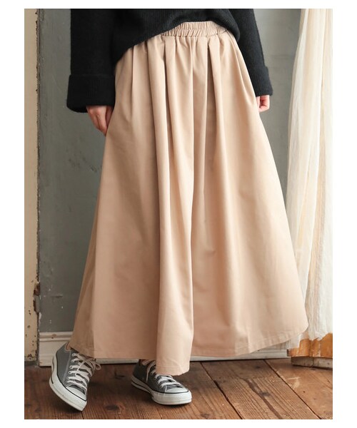 シンプルに徹したデザインで大人顔に仕上げたスカート。 タックフレアのシルエットは愛らしいだけでなく、気になる下半身をカバーしてくれる効果も。ウエストはバックのみゴムに切り替えて、穿き心地はノンストレスです。 カジュアルからきれいめまで守備範囲の広い1枚は、大人女子の頼れる味方です。