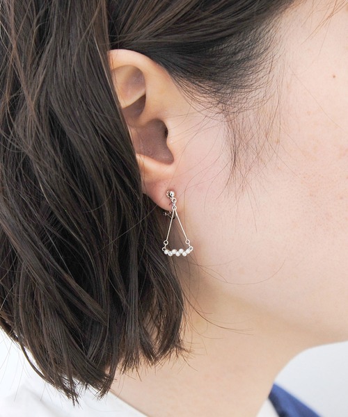 お仕事にもセレモニーにもピッタリな繊細なイヤリング プチパールビーズとビジューが耳元で優しく揺れる上品なデザインのイヤリング。小ぶりなので、セレモニーだけでなく、お仕事にもぴったりです。