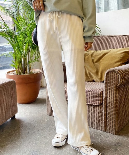 プチプラ¥2,500! 細リブで洗練された雰囲気を演出♪ 楽でカジュアルなパンツです。 ※WEARに記載してある金額と、DHOLIC通販サイトに記載してある金額にシステム都合上、稀に誤差が生じます。正しい金額はDHOLIC通販サイトに記載された金額です。