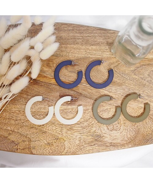 ※こちらの商品は【メール便】にてご配送となります。 (他の商品と一緒にご購入の際は、商品に寄って【宅配便】の配送料となります。) ーーーーーーーーーーーーーーーーーー ◆アイテム詳細◆ 耳元に映える大ぶりシルエットのフープピアス。 丸みフォルムが女性らしさを演出。 ボリューム感がありながら透明感のある質感で存在感をプラス ーーーーーーーーーーーーーーーーーー 【COLOR】ホワイト・カーキ・ネイビー 【SIZE】Fサイズ 全長 4.8cm 幅 0.5cm ※ピアスタイプです。イヤリングではありませんのでお間違いなく☆ 【素材】アクリル・錫合金