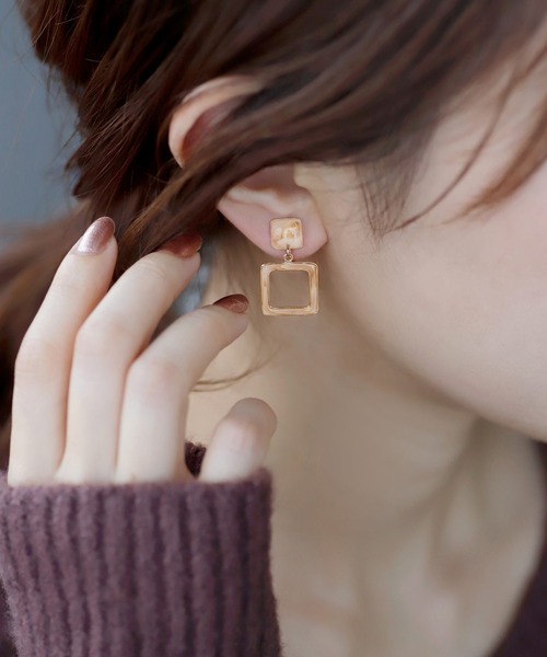 繊細なゴールドフレームにつや感たっぷりのテクスチャが特徴の、“グロスエポシリーズ”。ガラスのような透明感や、天然石のようなマーブル模様など絶妙な色合いの表現に加え、立体的な曲げ加工が魅力です。こちらは、艶やかなドロップモチーフが連なったやわらかな印象をプラスしてくれるイヤリング。耳まわりをスッキリさせたヘアアレンジと合わせることで、より一層イヤリングが映えますよ♪※ATTENTION※■製造・輸送時についた微細なキズや、曇り、気泡・内包物、接着剤のはみ出しが見られる場合がございます。■モチーフの色味、マーブル模様には個体差がございます。■表面から土台の接着面が透けて見える場合がございます。■ロゴプレートは片耳のみの仕様となっております。■【グレー】のみ入荷時期により色味が異なる場合がございます。上記は不良の対象外となりますので、予めご了承くださいませ。<価格改定のお知らせ>原材料の高騰により、2024/11/01から価格改定をさせて頂きます。商品タグに旧価格記載のものが混在している場合がございますが、ご了承下さいますようお願い申し上げます。