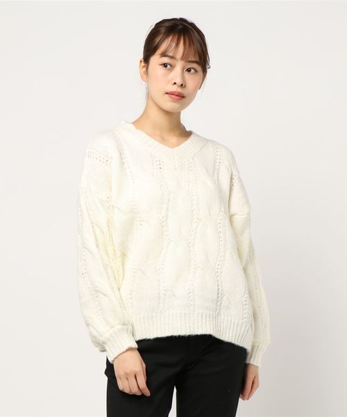 ゆったりとしたシルエットに立体的なビッグケーブルが目を惹くポイント。ボリューム感がありながら、シャープなネックラインがすっきりとした印象を与えてくれます。【素材・サイズ感】起毛感のある柔らかなニット素材。体のラインが響きにくい身体を包んでくれるシルエットが今年らしさを引き立てます。