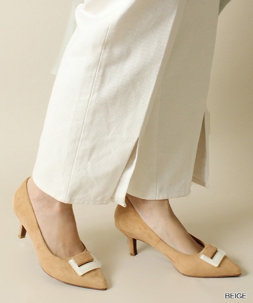 ◆2020SS新商品◆ さりげなく存在感のるスクエアパーツがポイントのポインテッドトゥパンプス。 中敷きに高反発クッションを使用しているので、足全体を柔らかく包み込み履き心地が良いです。 返りが良く滑りにくい底を使用し、歩きやすさにもこだわった一足です。 ‐‐‐‐‐‐‐‐‐‐‐‐‐‐‐‐‐‐‐‐‐‐‐‐‐‐‐‐‐‐‐‐ ★スタッフコメント (足の形には個人差がございますのであくまでご参考までにお願い致します。) 【スタッフA】 普段23.5を着用。足幅3E(広め) 幅は少しきついですが、23.5cmを履きます。 クッション性があり、履き心地が良いです。 【スタッフB】 普段23.5を着用。足幅E(ふつう) 私は23.5cmをぴったり履きます。 【スタッフC】 普段24を着用。足幅D(ふつう) 私は24cmをぴったり履きます。 ‐‐‐‐‐‐‐‐‐‐‐‐‐‐‐‐‐‐‐‐‐‐‐‐‐‐‐‐‐‐‐‐