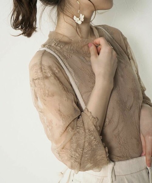 トレンド感のあるシースルーデザインのレースブラウス。 繊細な花柄のレースとハイネックデザインで品良く肌見せを演出してくれます。 柔らかいチュールで着心地が良く見せるインナーを合わせたりキャミワンピースや ニットとのレイヤードスタイルなど着回しの効くアイテム。 いつものコーディネートのインナーを透け感素材に変えるだけで旬な着こなしに仕上がります。 袖のシャーリングが女性らしさを引き立てます。 柔らかく程よい伸縮性のある素材です。 繊細な花柄のチュールレース生地で上品さがあります。 - - - - - - - - - - - - - - - - - - - - - - - - - - - - - - - - - 透け感:あり 裏地:なし 伸縮性:あり 光沢感:なし - - - - - - - - - - - - - - - - - - - - - - - - - - - - - - - - -