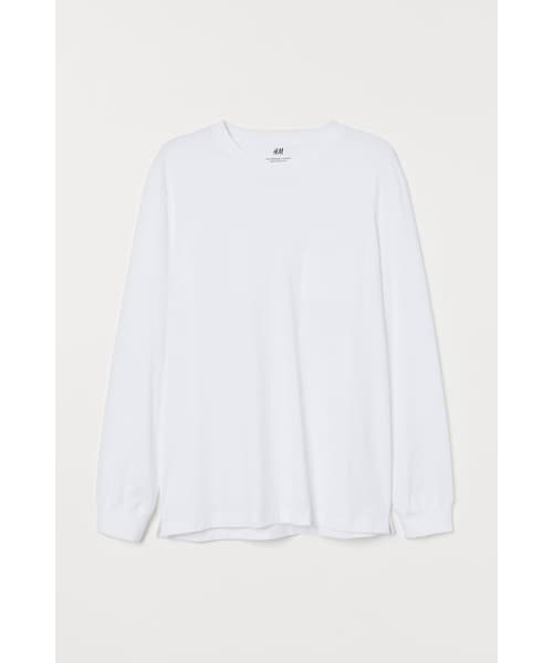 ソフトなジャージー素材の長袖トップス。片胸ポケット付き。ネックラインと袖口にリブ付き。裾の両サイドに短いスリット入り。リラックスフィット。