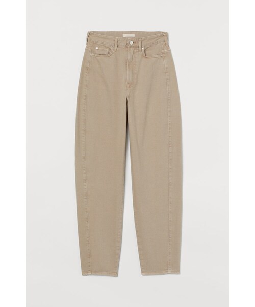 アンクル丈の5ポケットジーンズ。コットンのウォッシュデニム。ハイウエストで、裾に向かってゆるやかに細くなるワイドレッグ。サイドシームが斜めに施されています。
