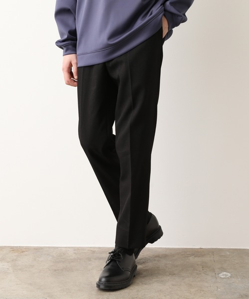 軽やかな履き心地が特徴のスラックスタイプボトムこだわりのシルエットでひざ下にかけて細くなるテーパードシルエットを採用し、スッキリしたラインを実現。 もも周りは細すぎないリラックスした履き心地となっております。 スリムながらもストレスフリーの履き心地を実現いたしました。 淡い色合いで春のスタイリングを盛り上げてくれるベージュ・定番で汎用性が高いブラックは1本は持っていたいボトムとなっています。 WEAR、インスタ、YOUTUBEなどで活躍中のJUNくんに紹介いただきました! スッキリしたスリムなラインと生地感が相まって新鮮なシルエットで見せてくれています。