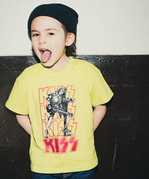 伝説のロックバンドKISSとのコラボ商品です!段積みロゴとコミカルなグラフィックがインパクト大!ライブパフォーマンスさながらのポージングが世界観を演出。シルエットは今年らしくゆったりとさせました。オーバーサイズ感がかわいい1枚です。 ※90cmは、首もとがスナップボタン仕様となります。