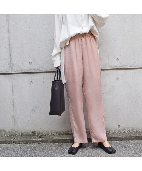 ◆アイテム詳細◆ Marient人気のサテンパンツがスプリングカラーで登場! ヴィンテージサテン生地でできたリラックスパンツです。 さらさらとした生地感で、ウエストゴムの楽な履き心地! サイドのディテールでラインを入れたように切り替えているのもポイント☆ 腰回りをカバーしながらスタイルアップが可能。 ゆるいシルエットがよりこなれ感を演出してくれます。 ニットを合わせたり、ブラウス合わせがオススメです! ーーーーーーーーーーーーーーーーーーーーーー 【COLOR】オフ・ピンク・グリーン・ブルー 【SIZE】Mサイズ 平置き(㎝) 着丈97 ウエスト32-36(ゴム使用) 裾幅21 股下69 【素材】ポリエステル 100%