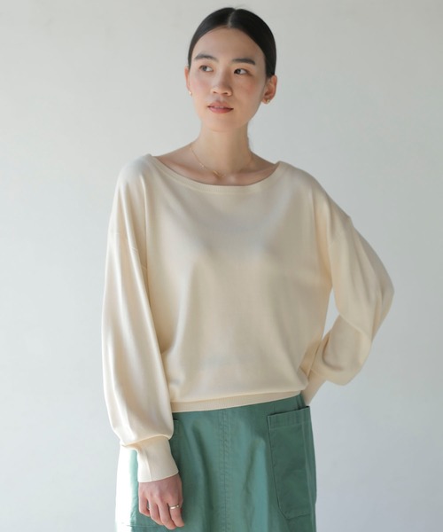 すっきりとしたボートネックで、上品な印象に仕上げたニットプルオーバー。ふくらみのあるスリーブデザインが可愛らしいポイント◎ドロップショルダーにすることで、肩周りを華奢な印象に見せてくれます。シンプルな無地で着回し力も高く、オンオフ問わず様々なコーディネートにマッチしてくれるアイテムです。● AMERICAN HOLIC ● (アメリカンホリック)大人の女性の毎日を軽やかで豊かにするブランド。カジュアルなのにオシャレ、コーディネートも楽。ONにもOFFにも等身大で楽しむオトナの日常着をテーマに、スタイリッシュかつ自然体を楽しめるカジュアルスタイルを提案します。 ▼ 商品のお気に入り登録がおすすめです ▼商品ページ内のハートマークをクリック。完売時の再入荷や、最後の1点の通知、コーディネート画像がアップされたとき、お得なお値下げの際の通知を受ける事ができます。【お知らせ】ページでも通知が確認できます。
