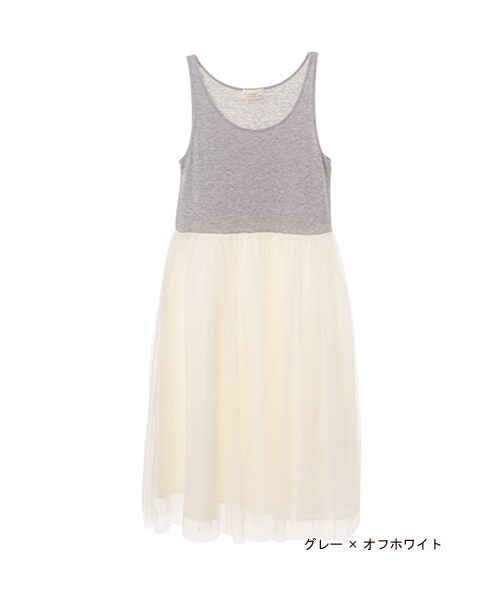 ギャザーの入ったチュールが可愛いタンクワンピース。今年らしいクロップドトップスとの相性も◎。