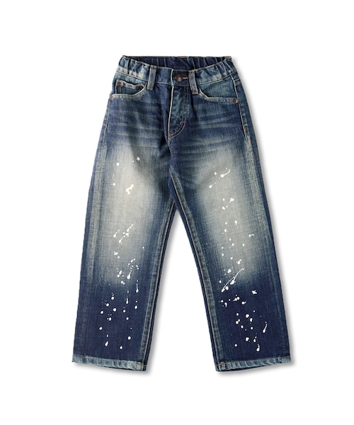 こだわりが詰まったペイントデニムパンツです。使用しているデニムも厚手の生地を使用することで加工感を出しています。広範囲に入れたブラストと、筆を使ったペイントの加工がポイントです。折り返した時の配色ステッチもアクセントとなっています。ゆったりシルエットに仕上げました。