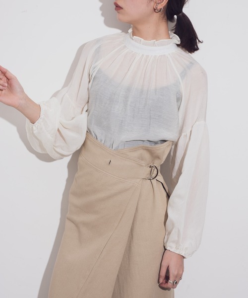 AUNT MARIE'S 2020SS 【AUNT MARIE'S シアーハイネックボリュームブラウス】 メインでもインナーでも使えるボリュームたっぷりの春ブラウス 《styling》 メイン使いはもちろんスウェットやニットなどのアイテムと重ねて使う レイヤードスタイルがおすすめ。 デニムパンツとの合わせで品のあるカジュアルスタイルに タイトスカートや、プリーツスカートなどと合わせてフェミニンな大人スタイルも◎ 《detail / fabric》 トレンドのフリルハイネックの透け感のあるレディライクなブラウス。 袖にボリューム感をもたせたアイテムで女性らしさを 引き立ててくれるデザインになっております。 ネック部分はボタンでの取り外しになっており、着脱しやすいデザインに… しわになりにくい素材の透け感のあるブラウス生地。 ※詳しいお手入れ方法は商品タグをご参照ください。 【商品のお気に入り登録】 完売カラーの再入荷通知やラスト1点の通知 プライスダウンの通知も受け取ることができます。 ぜひご登録ください◎ 【ブランドのお気に入り登録】 新商品や再入荷など、 ブランドの情報をいち早くお知らせします! ぜひご登録ください◎ ※ご注意※ ・屋外の光や照明の当たり具合で、実際の商品の色味と カラー別画像の色味に若干の違いが発生する場合がございます。 ・詳細画像と併せてご確認の上、ご注文いただきますようお願い致します。