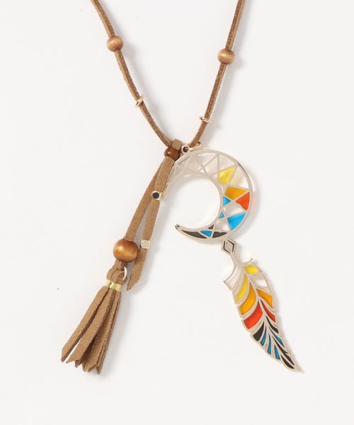 まるでステンドガラスのような美しいフォルムのネックレス。透明感のある表面は、太陽や光にあたると綺麗に光を通します。カラフルなデザインなので、コーデにプラスすると一気に明るく華やかな雰囲気に☆ボヘミアンなモチーフと合成皮革のタッセルを組み合わせたネイティブ調デザインで、カジュアルコーデのアクセントやフェススタイルにも活躍します◇◆※こちらの商品は1点1点職人による手作りとなります。その為、形や色合い・模様など若干異なる場合がございます。あらかじめご了承ください。※屋外での撮影画像は、光の当たり具合で色味・カラーが違って見える場合がございます。商品のカラーは、スタジオ撮影の画像をご参照ください。Amina Collection Co.,LTD.