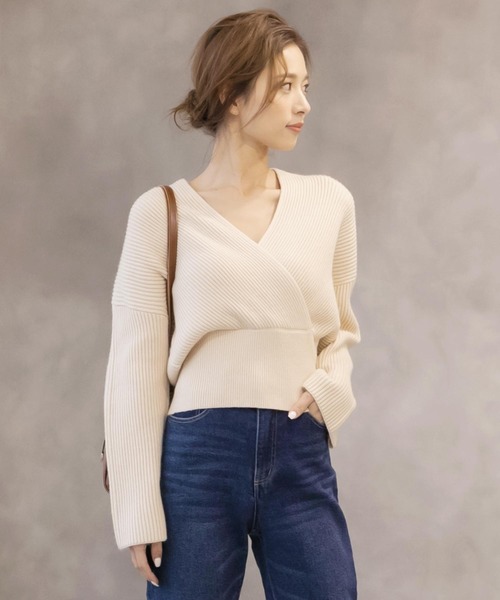 伸びがよく肌触りの抜群なリブ編みカシュクールニット。肌寒いけど春の気分も先取りしたいあなたにぴったりな1枚。抜け感の出るVネックで爽やかなニットスタイルを楽しんで◎【素材・サイズ感】ショート丈なのでハイライズパンツやスカート、ワイドパンツとの相性ぴったり。深めVネックなので、インナーにTシャツやヒートをレイヤードして見せるスタイリングもおすすめです。レーヨン混の糸を使用したので、柔らかく1枚で着てもちくちくしにくいセーターです。プチプライスながら上質な肌触り。