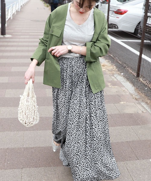 生地感:ややとろみのある薄手生地 伸縮性:ウエスト部分のみあり 透け感:ありポケット:あり 注意点:裏地なし、柄合わせなし フレア感を出すため裾の長さは均一ではございません。 お洗濯方法によっては縮みや色あせの可能性あり。乾燥機等のご使用はお控え下さい。