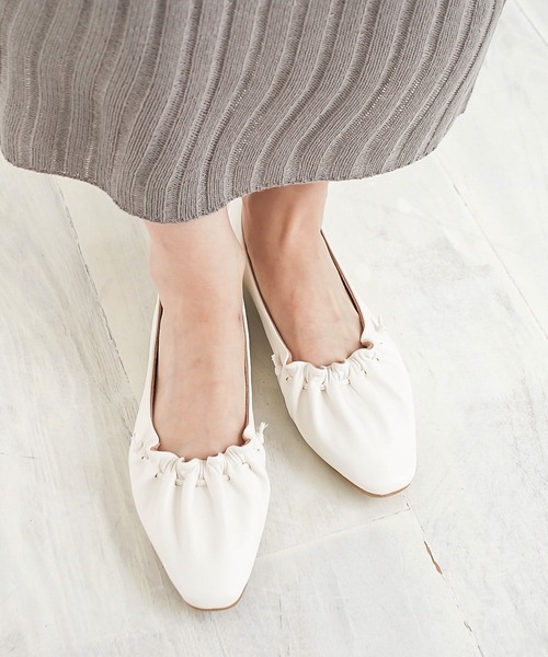 フラットでデイリー使いにもぴったりな、注目のギャザーデザイン 甲をストリングで絞ったギャザーデザインは今季トレンド!履き口から全体に広がるふんわり大きめのギャザーは女性らしさ満点! 人気のスクエアトゥで、これ一足でトレンドを抑えて今っぽく。フラットなので歩きやすく、デイリー使いにおすすめです。 足当たりの良い柔らかな履き心地と低反発クッションで疲れにくい。 柔らかアッパー素材で歩いた時もストレスのないしなやかな履き心地。足当たりの優しいしっとり柔らかな裏地を採用。 ギャザー部分で足を固定し、ぶれないのでしっかり踏み込めてラクチンです。 どんなコーデにも合わせやすいなじみのよいカラーリングもポイントです。 【スタッフ着用コメント】 ●普段サイズ22.5~23.0cm甲普通・足幅細め 素足で着用S⇒長さゆとりありますが幅ぴったりで脱げることなく履けます。柔らかくて履き心地いいです。 ●普段サイズ23.5~24.0cm甲高め・足幅広め 素足で着用 M⇒ジャストぴったりで履けます。 L⇒長さゆとりありますが、甲のギャザー部分で脱げることなく履けます。 ●普段サイズ24.0~24.5cm甲高め・足幅広め 素足で着用 L⇒きつくなく丁度よく履けました。素材が柔らかいので履き心地よかったです。甲のところは少し食い込む感じがありました。 LL⇒長さが余っていてゆったりしていますが、甲が絞ったデザインなので脱げず履けました。ゆったりめに履くならこのサイズがいいです。 ---------------------------------------------------------------------------- <価格改定のお知らせ> 2022/6/8より、原材料高騰のため価格改定をさせて頂きます。 ご了承下さいますよう、お願い申し上げます。 ----------------------------------------------------------------------------