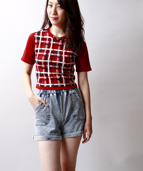 柔らかなデニム素材を使用したショーツ。今季人気のハイウエスト仕様で、トップスをインした際にウエスト周りのシルエットが綺麗に見えるひと品です。また、裾口を折り返したデザインは足長効果がありレッグラインを細くスッキリと見せてくれます。ヘアバンドやスニーカーを合わせるような、MIX感ある着こなしも今季オススメです。 店舗にてお問い合わせの際は、下記の品名・品番をお申し付け下さい。 品名:ロールUPショーツ 品番:BL14SM-2605-016 model:H162 着用サイズ:FREE 詳細画像 model:H170 B81 W65 H88 着用サイズ:FREE WEGOの特集ページはコチラ