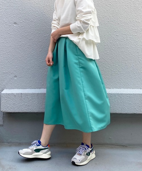 タックデザインがシルエットに立体感を加え、 可憐な印象を与えるスカート。 スッキリとしたウエストラインは、 バックのみゴム仕様になっており着心地も◎ 春夏らしい鮮やかなカラー展開と ふんわりと緩やかに広がるフレア感が、 女性らしさをより引き立たせてくれます。 コンパクトなトップス合わせや あえてゆったりアイテムと合わせたリラックススタイルにもおすすめです。 ※撮影場所や明るさにより 実際の商品と色味が若干異なる場合がございます。 ☆商品のお気に入り♡登録を押せば ”再入荷通知”や”残りわずか通知” 値下げのお知らせが届きます! お気に入りのブランド登録していただければ新商品入荷のお知らせも届きますので 是非登録してみて下さい。