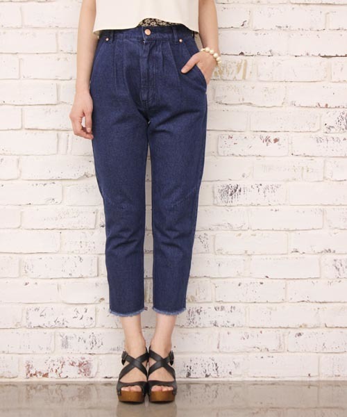 Kastane(カスタネ)人気のデニムパンツの再入荷!☆9分丈の裁ち切りの形が新鮮なデニムパンツです。足首を見せて履くことで、スタイルアップも狙えます!ウエストのタックもポイントになっています♪