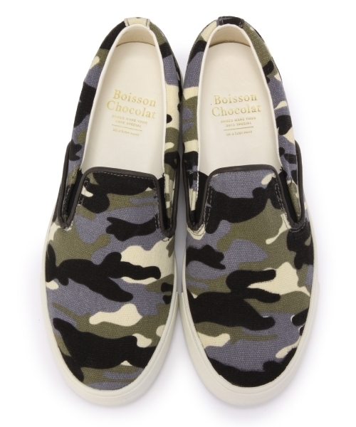 ★Boisson Chocolat★ 2014 Fall & Winter collection★ ボワソンショコラから新しいスリッポンタイプの スニーカーをご紹介いたします。今すぐ履いていただけるホワイト、 秋まで使えるブラックと迷彩柄をご用意いたしました。 かかと部には低反発クッション入りの優しい履き心地が見逃せないポイント! 是非、お試しくださいませ。店舗にてお問い合わせの際は、Boisson Chocolat 各店舗まで下記の品番をお申し付け下さい。 品名:B クラシックスリッポン 品番:4115-199-0007