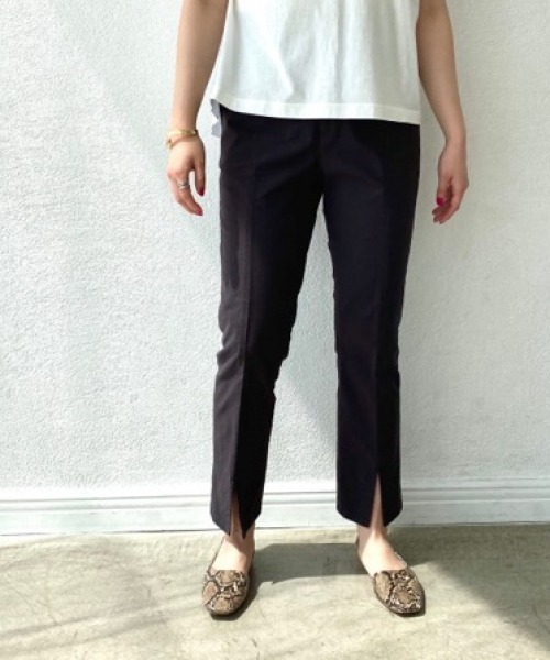 裾に入ったスリットがアクセントになる麻混パンツ。 麻が入ることで通気性が良く、春夏に穿きやすい素材感になっています。 裾のスリットで少しフレアのようなシルエットになるのもポイント。 カジュアル見えする素材ですがシルエットはキレイめなので幅広い方に着て頂けるパンツです。