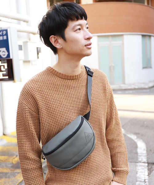 シボ感のあるフェイクレザーを使用したボディバッグ。 財布やスマートフォンなど、身軽なお出かけに最適です。 口が大きく開くので、出し入れがラクチンなのもうれしいポイント。 エンボス加工でワンポイントデザインを加えました。