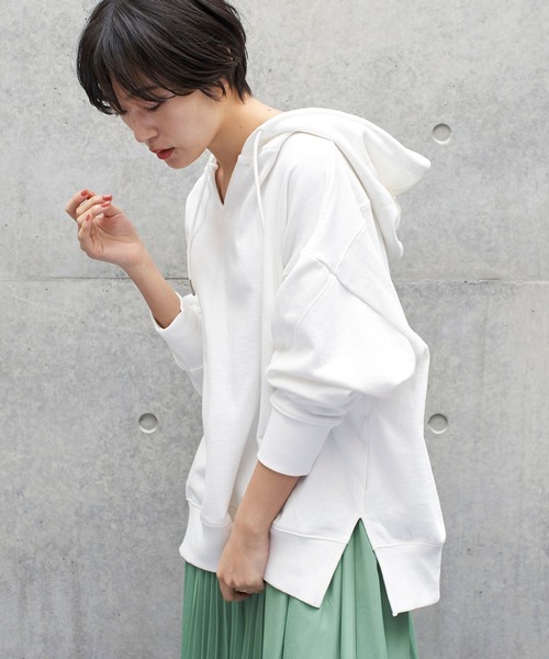Vネックにすることで顔周りをすっきりと見せてくれるフード付きプルオーバー。 ドロップショルダーのゆったりシルエットで着心地も良く、気負いなくスタイリング出来るのも魅力です。 裾のサイドにスリットが入っているので、フロントのみタックインしたコーディネートもおすすめ。 ● AMERICAN HOLIC ● (アメリカンホリック) 大人の女性の毎日を軽やかで豊かにするブランド。 カジュアルなのにオシャレ、コーディネートも楽。ONにもOFFにも等身大で楽しむオトナの日常着をテーマに、スタイリッシュかつ自然体を楽しめるカジュアルスタイルを提案します。 ▼ 商品のお気に入り登録がおすすめです ▼ 商品ページ内のハートマークをクリック。完売時の再入荷や、最後の1点の通知、コーディネート画像がアップされたとき、お得なお値下げの際の通知を受ける事ができます。 【お知らせ】ページでも通知が確認できます。