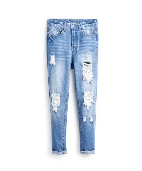 淺色仿舊刷破九分男友褲,刷白刷破感無造作的男友九分褲風格,褲管可自行反褶,前後口袋皆可使用。