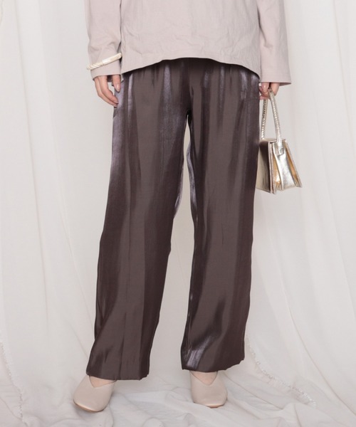 サラッとしていて軽く、光沢感がコーデのポイントになるワイドパンツ。 適度に張り感があるので、ラフになり過ぎず穿いて頂けます。 ウエストはゴム仕様なので楽チンに穿けるのも嬉しいポイントです。 シンプルなトップスにもこなれ感を 演出してくれる一枚は持っておきたいアイテム◎