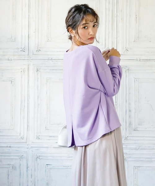 バックスタイルに施されたスリットが印象的なひと品。フロントのデザインはシンプルなので、気回しやすいのも魅力のひとつ。ボトムスやレイヤードしたインナーがのぞくバックスタイルがこなれ感を演出します。【素材・サイズ感】着やすい薄さの滑らかな綿混素材のトレーナー。程よいボリューム感がラフな着こなしを叶えてくれます。ボトムスやレイヤードのインナーの合わせ方次第で幅広いコーデを楽しめます。