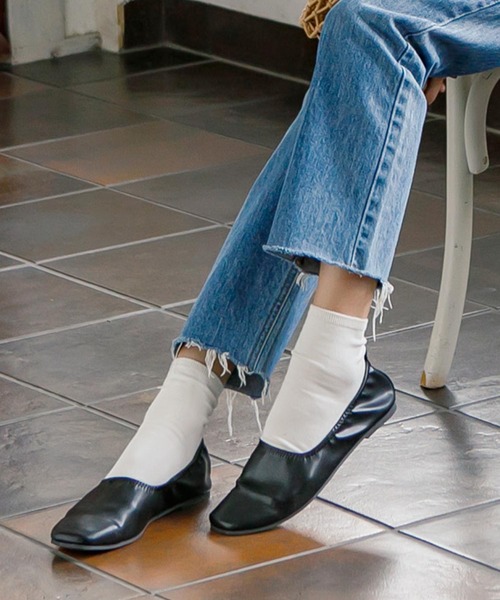 履き口にゴムが入っておりフィット感が心地良いギャザーフラットシューズ。柔らかな生地で足当たりがとても良いです。トゥの形をスクエアにすることで、カジュアル過ぎない雰囲気に。素足にはもちろん、靴下レイヤードでもお洒落になるぺたんこ靴です。【素材・サイズ感】S~LLの4サイズ展開。伸縮性のあるスムース調で柔らかい足当たり。