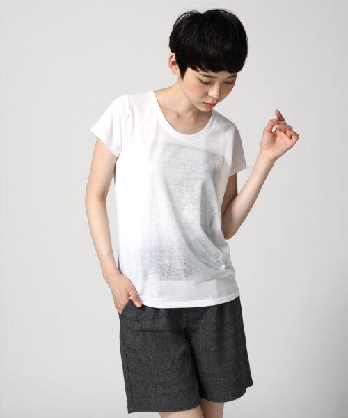 肌なじみのいい素材に、箔プリントを施したアクセントTEEシャツ。身幅はスッキリとしたほどよいサイズ感にしているので IN・OUTどちらにでも対応できます。サロペットなどの、インナーとしてもおすすめです☆