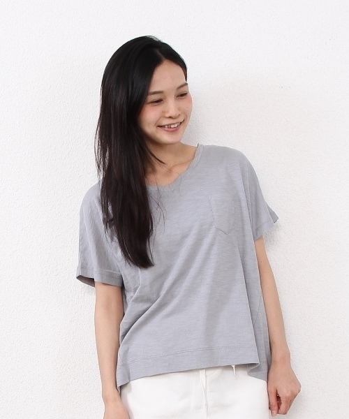 肌さわりのよい綿素材を使用したスラブ糸の半袖カットソー。 襟ぐりにねじりをきかせ、脇に切り替えをいれたシンプルながらさりげないアクセントがきいたデザインの一枚。 鎖骨がきれいに見える適度なVネックの襟開きがポイント。インナーがわりにも使え、飽きのこないデザインです。店舗にお問い合わせの際は、全国のコーエン各店まで下記の品番をお申し付け下さい。品名:G Cスラブ V/N P/O 品番:7625-630-4100スラブVネックカットソー中国製 modelH160 B78 W58 H85 着用サイズ:フリー