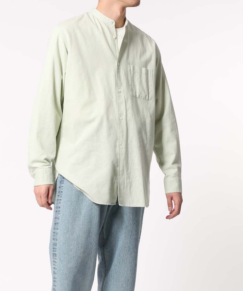 ポスト化学繊維の注目素材、バンブー(竹)繊維を使用した、ハリコシのある肌触りのオーバーサイズのバンドカラーシャツ。【素材】 天然繊維のバンブー(竹繊維)を使用して綿糸と混紡して作ったオリジナル素材。竹本来の特徴のハリ感、見た目のフシ感が残り、リネンに似た独特の風合いが特徴です。竹本来の機能性である強度に優れ、抗菌作用、防臭作用、抗酸化作用が期待されるポスト化学繊維としても注目されています。また、竹はほかの植物と比べて成長が早く、1年で伐採でき、資源豊富で価格も天候に左右されにくく原料も安定的に確保できるため、持続的に利用が可能なエコでサスティナブル素材です。 【デザイン】 程良くオーバーサイズのバンドカラーシャツです。軽やかな素材感とリラックスムード漂う大人の春夏スタイルにハマる格上アイテム。デニムやチノパンはもちろん、ワイドパンツやクロップドパンツとも好相性です。 【スタッフ着用レビュー】 身長:180cm サイズ:L ゆとりを感じれるくらいのオーバーサイズのバンドカラーシャツです。 ナチュラルな天然素材感がリラックスムード漂う大人な表情を感じさせてくれます。 シーズンレスな素材になりますので今の気分と羽織のインナーでも活躍できる色を選んでみて下さい。 スラックスなどの艶感ある素材と合わせると天然素材が更に引き立ち、素材を活かしたスタイリングを楽しんでもらえます。 天然素材なので肌あたりの気持ち良さを体感してもらいたいです。