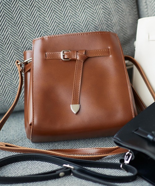 程よい大きさと調節自由なストラップで持ち方自在。デザインベルトが目を惹くショルダーバッグ。【素材・サイズ感】大きすぎないショルダーバッグはデイリー使いにぴったり◎肩から掛けると両手があくので便利です。スクエアタイプなので、小ぶりながらも大容量なのもポイントです。