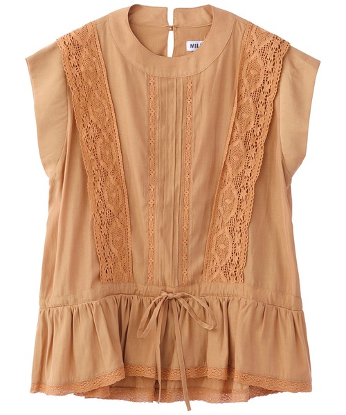 【デザイン】・同色のレースでトーンをまとめた上品なブラウスです。・リボンで絞れる仕様になっているので、シルエットに変化をつけて楽しめます。【スタイリング提案】・女性らしいアイテムは、デニムを合わせるとカジュアルダウンするのでデイリーに着やすくなります。【特徴】・透け感:ややあり・裏地:なし・光沢:なし・生地の厚さ:普通・伸縮性:なし・シルエット:スタンダード※アテンションタグ・洗濯表示を必ずご確認の上、ご使用下さい。※画像の商品は光の照射や角度により、実物と色味が異なる場合がございます。また表示のサイズ感と実物は若干異なる場合もございますので、予めご了承ください。