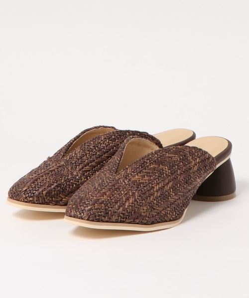 【2020SS natural couture】 雑材素材にラウンドヒールがおしゃれにキマるミュール ラウンドタイプの太ヒールが楽ちん、かつお洒落に決まるサンダル。夏らしい雑材素材を使用し、シーズンムード高まる1足です。フロントのVカットが女性らしく、足の甲を美しくみせてくれます。程よい高さのヒールでワンピースやスカートのレディなアイテムはもちろん、デニムやリネンパンツなどのカジュアルなアイテムとも相性◎かかとがないミュールタイプは足入れもスムーズで、これからの時期に出番が増えそう!