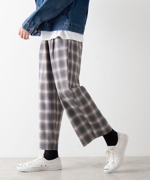 【上品でモードなワイドスラックス】 ■Detail 高級感は残しつつ、クラシック過ぎないチェック柄を使用したワイドパンツ。 フロントにはジップフライを使用し、落ち感のあるTR素材を使用しているため、裾に向けてキレイに落ちるシルエットに。 足元をスッキリと見せてくれるアイテムです。 タックが入っているのでハイウエストでシャツやカットソーをタックインしていつもと違ったスタイルを楽しむのも良し◎ コーデによってはカジュアルにもモードにも着こなせる表情豊かな1着。 ■Fabric 上質な光沢感のある生地感ながら、しわになりにくく着崩れしにくいのが魅力。 ■Styling フォーマル、カジュアル、スポーツスタイルと幅広く着用可能。 スウィングトップ等、ショートブルゾンとの相性が◎ 普段使いはもちろん、カジュアルなパーティーや結婚式・二次会などにもお使いいただける万能アイテムです! ※ジップフライ。 【セットアップ対応商品】※別途販売となります。 ・チェックダブルテーラードジャケット(WE20SP02-M9215) インフォーマル / カジュアルエレガンス / スマートカジュアル 【WEGO ZOZOTOWN お買い物ガイド】 ▼商品のお気に入り登録 ♡をクリック! 完売カラーの再入荷通知や、ラスト1点の通知、セールの通知をお知らせします。 ▼ブランドのお気に入り登録 新商品や再入荷など、いち早くWEGOのお得な情報を受け取ることができます。 ▼最短で翌日お届け 商品をカートに入れた後、注文内容の確認ページで「即日配送」を選択していただければ、最短でご注文した翌日にお届け致します。