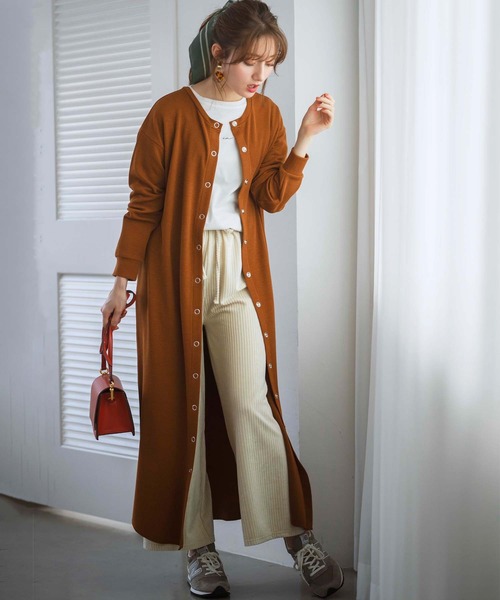 ゆるっとシルエットとリラックスした着心地のワンピースは前後どちらにも着られるデザイン♪ ボタンを前にして開けて着ればロングカーデにもなる3WAYデザイン! シーンに合わせて着回しOKで長いシーズン着まわせる!ワードローブに揃えておきたいアイテムです。 ボタンはスナップボタンを使用してデザインのポイントに!着脱も楽々で利便性にも優れたところも◎ リブ調の柄が入ったカットソー素材は柔らかく伸縮性もあり着心地◎ 1枚でさらっと着るのもOK!ワイドパンツやスカートとレイヤードしてリラックスコーデにしてもOK! ロングカーデにすれば、さっと羽織るだけで今年らしいスタイリングができちゃう♪ ●前後2WAY仕様 ※ドロップショルダーデザインです。 洗濯:手洗い可 --------------------------------------------------------------------- ※サイズ寸法は実際の寸法と多少の誤差がある場合が ございます。 ※ご覧いただいているPC/WEB環境や撮影環境により、 多少色味が異なって見える場合がございます。 【お買い物をよりお楽しみいただく為に】 ▼商品のお気に入り登録をおすすめします♪ 『♡をクリック!』 完売カラーの再入荷やラスト1点の追加、 セールの際の通知を受ける事ができます。 ブランドのお気に入り登録もご一緒にお願い致します。 ---------------------------------------------------------------------