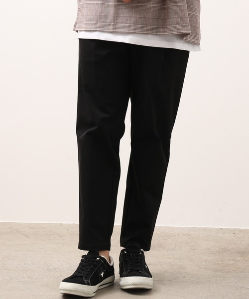 ・ウエスト部分を配色で切替えたイージーパンツ・T400のナチュラルストレッチ素材を使用しているのでしっかりとした素材感ながら履き心地も良くお手入れもしやすくなっています。(※無地の部分のみがT400)・ワンタック入ったテーパードタイプでスタイルを選ばず履きやすいデザインに仕上げました。