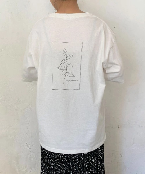 定番の綿天竺を使用したロゴプリントT。英語の筆記体と女性らしい繊細なアート柄をプリントした大人っぽく上品なアイテム。ジャケットやシャツなどのインナーとして、暖かくなれば1枚で、と長い期間着ていただけます。